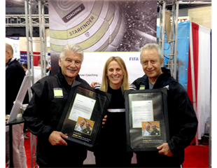 Two-time FIFA World Cup™ champion and two-time Olympic Gold medallist, Kristine Lilly, presented Coerver® Coaching Co-Founders Charlie Cooke and Alfred Galustian with a letter from FIFA at the NSCAA Convention in Philadelphia last week. The letter is an acknowledgement of Coerver® Coaching’s 30 year contribution to the global development of the game.